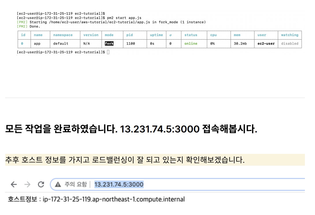 git clone https://github.com/mingoogle/aws-tutorial.git # ls 명령어로 확인하기 ls13. pm2로 실행하기