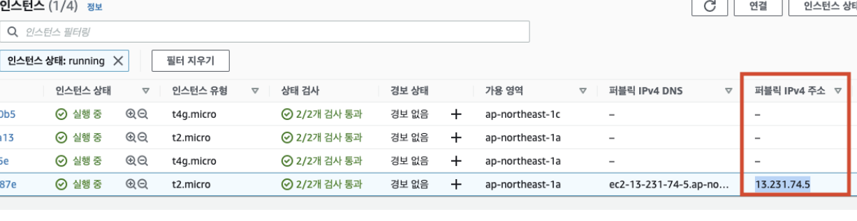 퍼블릭 IPv4주소 : 13.231.74.5
