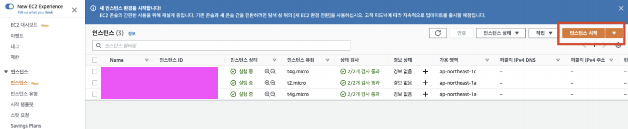 - 인스턴스 상태가 '실행 중'인지 확인합니다.