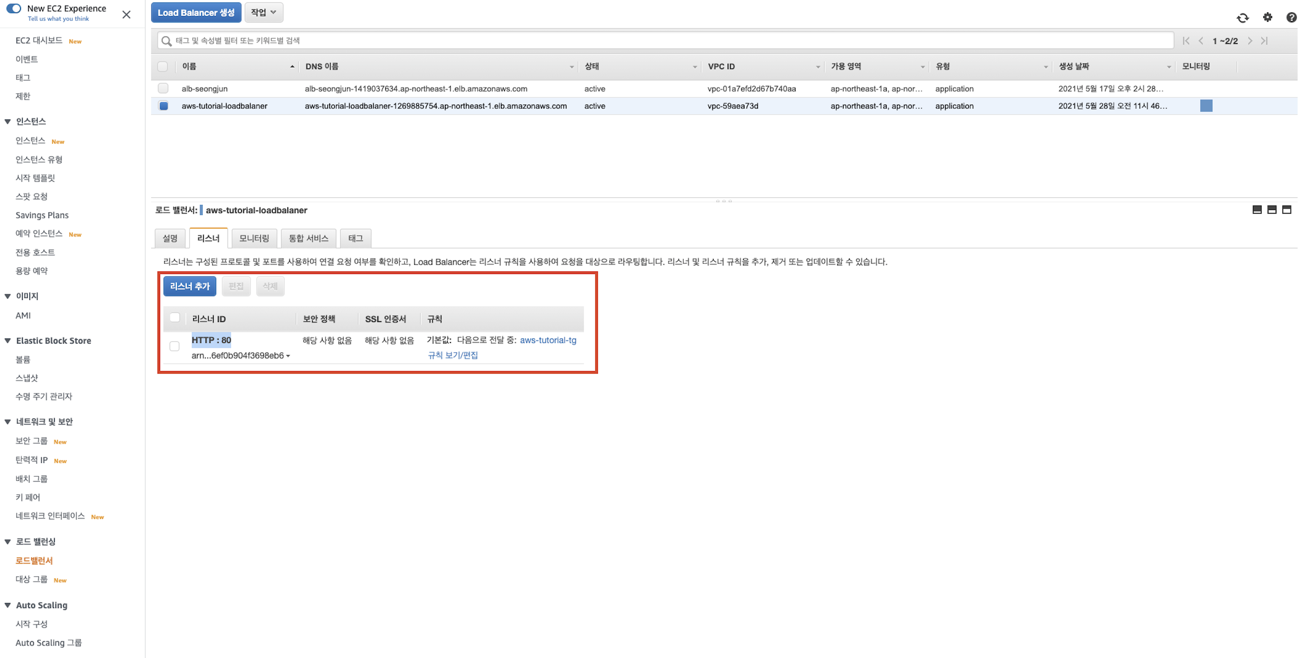 - 정상적으로 생성이 되었는지 Load Balancer 대시보드에서 확인합니다.