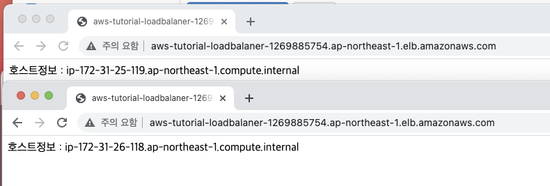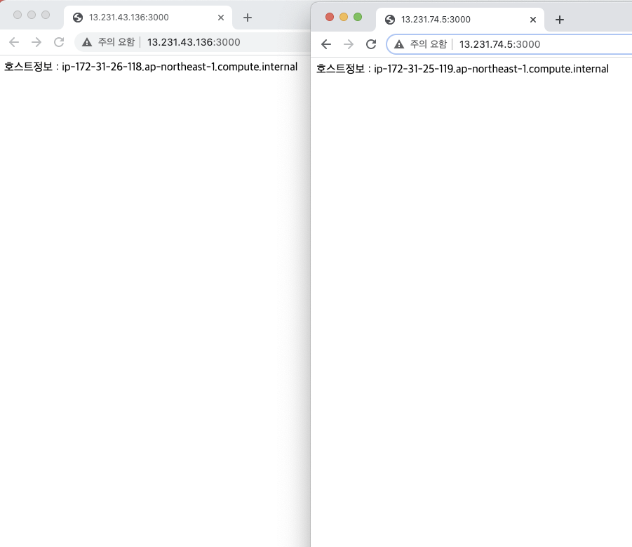 호스트정보를 보면 2대의 EC2서버에 각각 요청한 것을 확인할 수 있습니다.