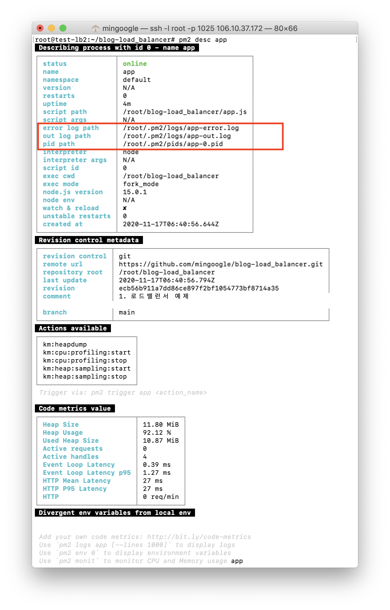 // pm2 desc pm2의AppName pm2 desc app
