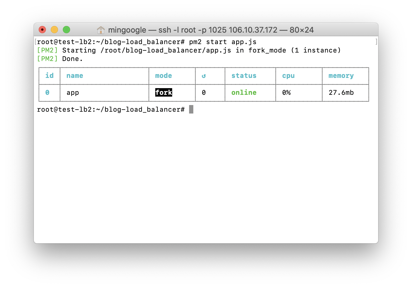- 실행할 파일 경로까지가서 입력하세요. (blog-load_balancer/app.js)